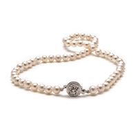 A 14" pearl necklace with small cultured freshwater pearls and a sterling silver filigree clasp. Also available in a shorter 12" necklace or an even longer 16" or 18".