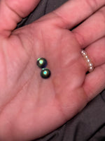 Here is a pair of 8mm matching abalone mabé pearls. Unlike other earring listings, these abalone (paua) pearls are not set in silver, they are just the pearls!