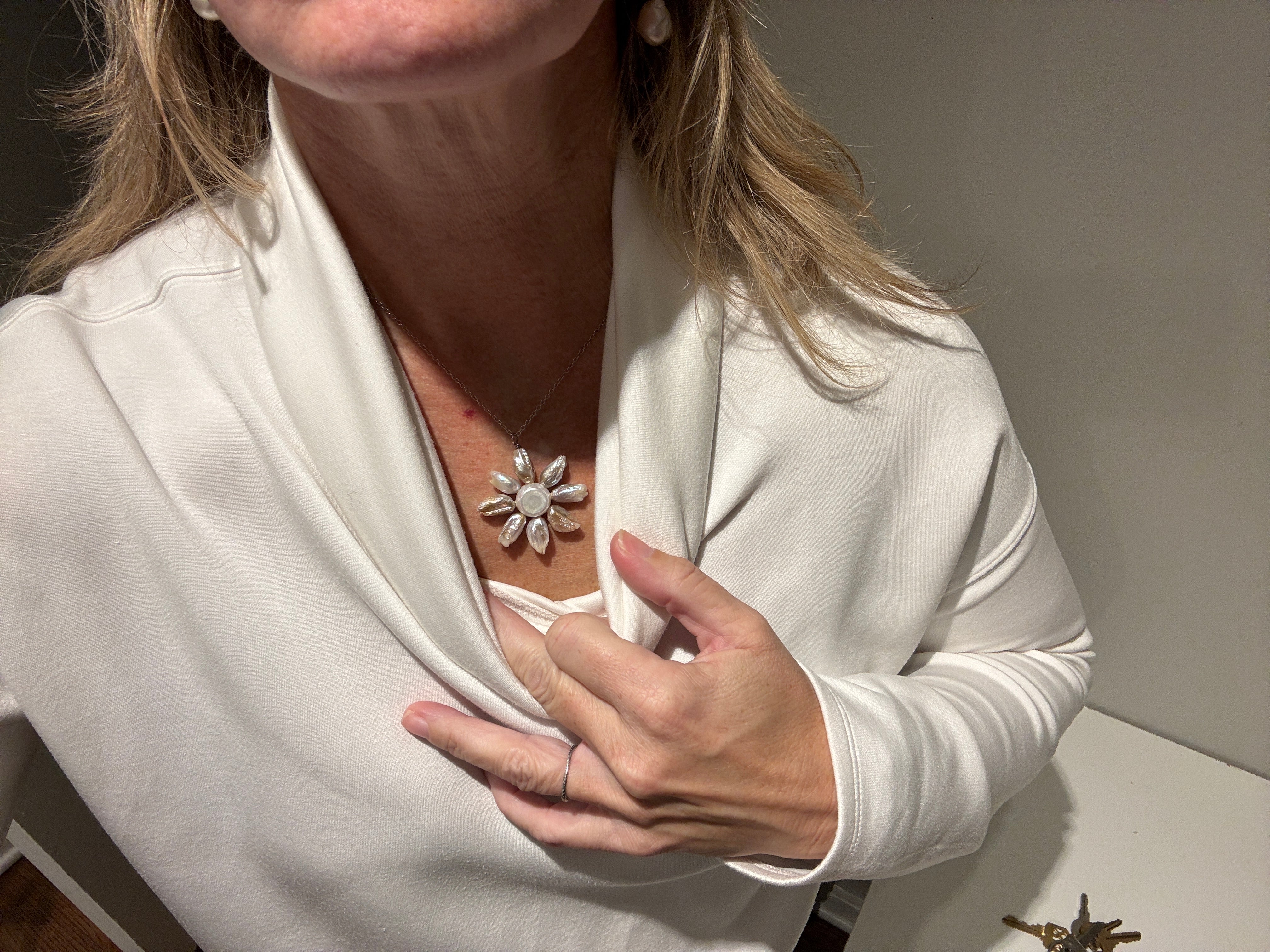 This piece is a treasure from The Pearl Girls vault — once available only in our Athens, Georgia store, now shared with our beloved out-of-towners, too! Handmade with love and care, the Sea Petal Necklace is a radiant expression of the sea’s natural artistry.