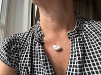 Crafted from a single oversized baroque pearl, this necklace is nothing short of stunning. We’re talking about a pearl that’s approximately 11-12mm in diameter, with an ethereal luster that shines from every angle. The irregular shape of baroque pearls ensures that no two are ever alike—and that’s what makes them so special.