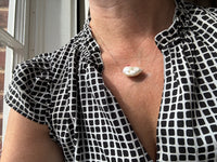 Imagine a single, lustrous baroque pearl floating gracefully on your neckline. This necklace is simply breathtaking—one look, and you won’t want to take it off!