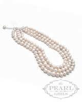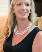 Three strands of pearls... A beautiful creation for a dear friend of ours. By her special request, we created a Triple Strand Pearl Necklace! Our friend Karen asked us to create a three strand pearl necklace for her. She wanted larger pearls but she didn't want to create a necklace that is so pricey she couldn't wear it everyday. So, we used our beautiful, off round 9mm pearls. They are the same beautiful gems we use in our. Gorgeous pearls with a great luster and a size big enough to truly POP!