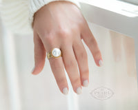 The Pearl Girls BIG Pearl Ring is one of our favorites! Go big with a 12mm pearl set in our signature, custom designed setting. This ring features an extra large 12mm pearl! It is big and bold pearl and a perfect statement piece.
