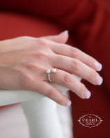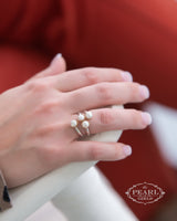 First, this Twin Pearl Ring features two of The Pearl Girls small pearls. Hello luster! Next, it adapts to the size of your finger. Do your fingers swell with the seasons? Do you have knuckles that are bigger than your ring size? Do you enjoy the flexibility of different ring sizes that adjust when you need them to? This is the pearl ring for you! All in a custom, made-for-you design.