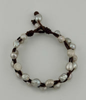 Each bracelet has a unique design all its own, with the straps in either dark or light brown leather, as well as a stretchy black band option. The leather options each display intricate braiding, designed to hold the pearls in place while creating a dynamic look. The layer-ability of these bracelets will create a fun and interesting mixture to your current collection. All under $100, these pieces are the perfect stocking stuffer, teacher's gift, or even special "just because" friendship bracelet.