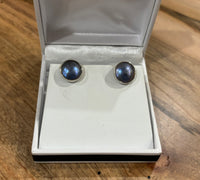 Here is a pair of 10.5 mm matching abalone mabé pearls. These abalone (paua) pearls are set in sterling silver, and they are a gorgeous, all natural purple color!!