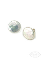 The Oriental pearl earrings. Now we're talking! Look at these beautiful coin pearl earrings! Actually, wait until you see them in person (even better!). The luster is so striking in these earrings that they were very difficult to photograph!!