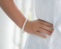 We love, love, love these pearls and more bracelets on stretch elastic! We have taken our medium to large size sized pearls (9mm) and combined them with beautiful bling beads. These bracelets are unique, interesting and SO easy to wear! Slide them on – the pop of bling makes them a fun pearl bracelet! Mix or match with our Game Day and All-American bracelets!