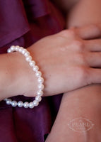 A classic single strand pearl bracelet. This is an elegant bracelet with high-end cultured pearls. We believe single strand bracelets are more versatile than our elegant double strand pearl bracelets. Wear this essential pearl bracelet alone or layer it with other bangles and bracelets, so fun! This pearl bracelet can be paired with a classic pearl necklace or simply worn with other jewelry.