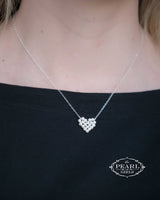 It is always easy to say "I Love You," with the gift of cultured pearls but with our new, gorgeous earrings, the conversation just got a whole lot easier. I probably do not even need to tell you that our Cultured Pearl Heart Necklace is one of our most popular pieces. The necklace features 4mm pearls woven into a heart shaped design. In the earrings, we used even smaller 3mm pearls to create slightly smaller cultured pearl hearts. We have attached these sweet pearls to sterling silver hooks. Do you prefer gold? Choose 14K Yellow or White!