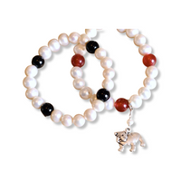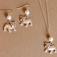 These pieces each feature an adorable silver bulldog charm and a white freshwater pearl. Perfect for any kind of bulldog lover... whether it is your favorite team, or, your favorite companion!