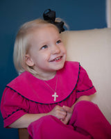 This is the cross of compliments. We find that when women wear this piece, people notice. The same way our first Pearl Cross customer noticed a similar design being worn by a movie star in her church! We have gotten so many kind messages about this pearl cross and we are so appreciative that you know the work and the dedication that goes into creating this piece. Wear this beautiful necklace with pride.
