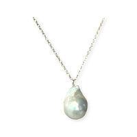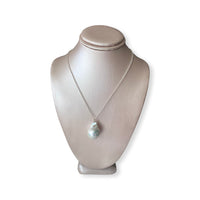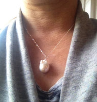 The beauty of this piece lies in its simplicity. The large, unique pearl is set on a delicate sterling silver chain, creating a timeless look that works with any style. You can also opt for a 14K gold chain, allowing you to customize this stunning piece to suit your personal taste.